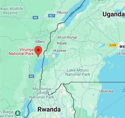 The twins' birth is an extra happy event because mountain gorillas are endangered, mothers usually give birth to one infant every 4 years, twins are rare (it is thought less than 1%) and the world's entire population of just over 1,000 mountain gorillas resides in just two isolated groups living in nearby high-altitude montane and bamboo forested habitats. One is between the Virunga Mountains, a range of extinct volcanoes that borders the Democratic Republic of Congo, Rwanda and Uganda, and the other is in Bwindi National Park in Uganda, that runs alongside DRC's Sarambwe Nature Reserve.