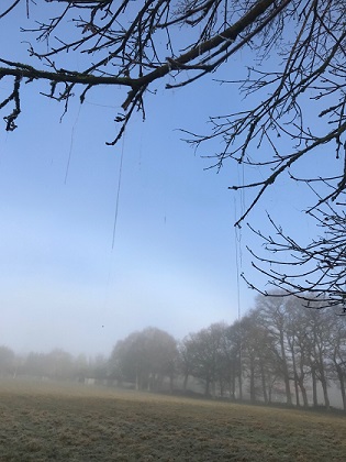 Even on dark, dank, gloomy days, squirrels play tag amongst the trees and there are signs of new life alongside the footpath as 'Lords and Ladies' poke through the earth next to the pale yellow of an early primrose. And when the somewhat sullen sun filters through the fog, it highlights broken cobwebs in slivers of silver, hanging, like ever stretching pendulums from over-arching trees, carrying beads of crystal downwards before they eventually drop with the weight, onto the ground beneath. On even colder days, fields adorned with fairy silk gossamer strands a few months ago, are transformed into thick, white-webbed, statuesque peaks, like frozen, choppy waves. When the Furnace Lakes were iced over, some of these land/sea-scapes, were ridden by a small flock of Egyptian geese whilst 2 cormorants perched like sentinels in the bare branches nearby, above the ever-running river Arun.