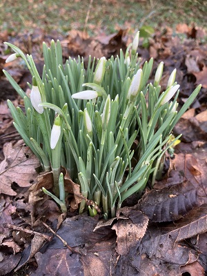 More likely to see/hear: birds 'wooing' and building nests; blankets of white flowering snowdrops and wands of pussy willow attracting the first emerging insects; early tree and buff-tailed bumblebees appearing very early from their cosy dens; primroses, crocuses and the shoots of wild garlic; violets in the churchyard; roe deer feeding in small groups on the edge of woodland at dawn.