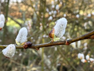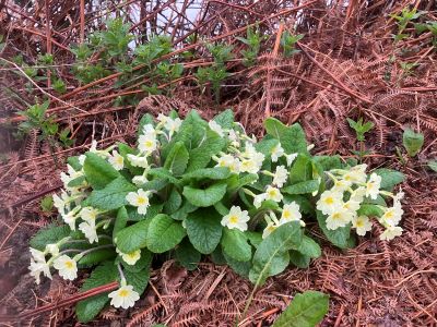 Highlights of March: the blooming of spring - banks of primroses, periwinkles, blossom, violets, anemones and early cuckoo flowers; a cock pheasant gazing motionless at his handsome reflection in the stream; bright red star-like hazel flowers; holes of varying sizes (from bees and water voles to badgers); shield bugs mating back-to-back; a pair of wandering Egyptian geese; dandelion 'clocks' in time for our own clocks to spring forward; news that nightjars in the South Downs National Park have doubled in the past 5 years. More unusual: last seasons' sloes still hanging alongside blossom.